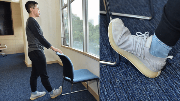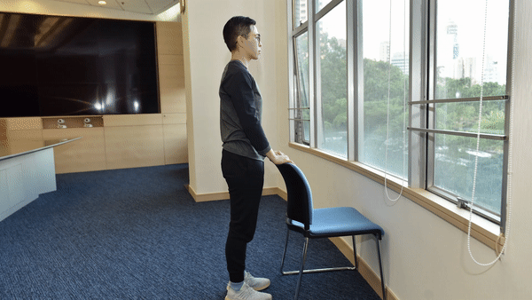 1. 手扶牆或櫈,腳往後移