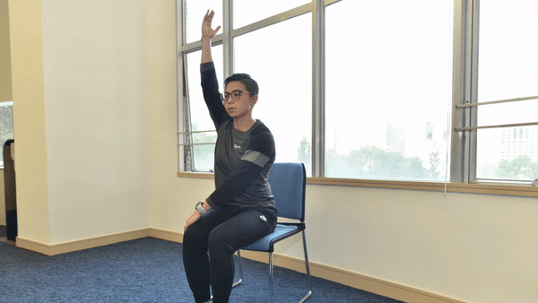 2. 舉手貼耳旁,側彎至對側