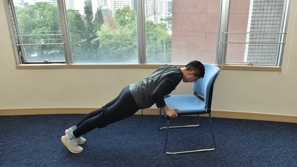 (如想減低難度,可做 Chair Plank 櫈上平板支撐)